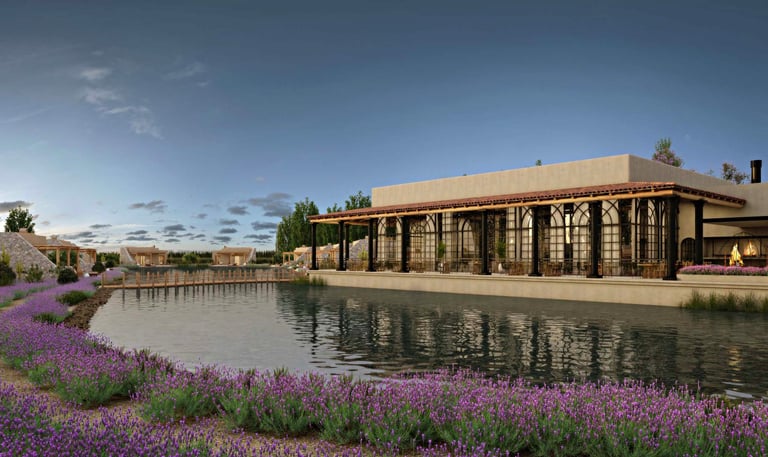 Concebido como un refugio de calma y exclusividad, el proyecto integra lodges entre viñas que rodean una laguna natural, creando un entorno donde el paisaje se convierte en parte de la experiencia.